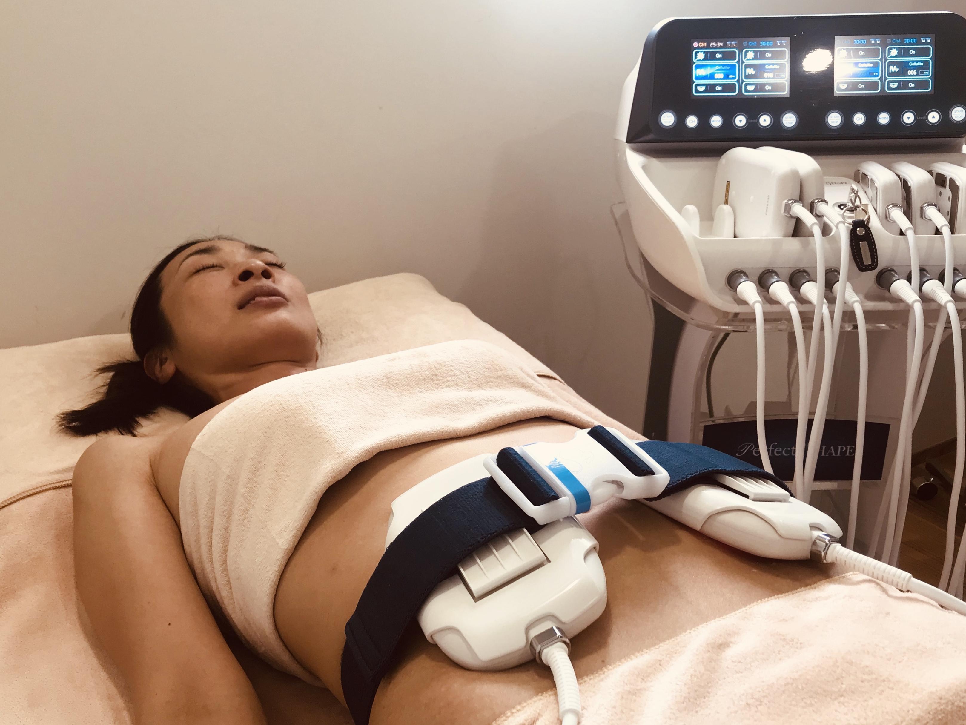 キャビテーション15分、最新医療痩身マシンのパーフェクトシェイプ90分(レーザーダイオード光痩身、高周波エネルギー、MLF運動で4500カロリー消費)